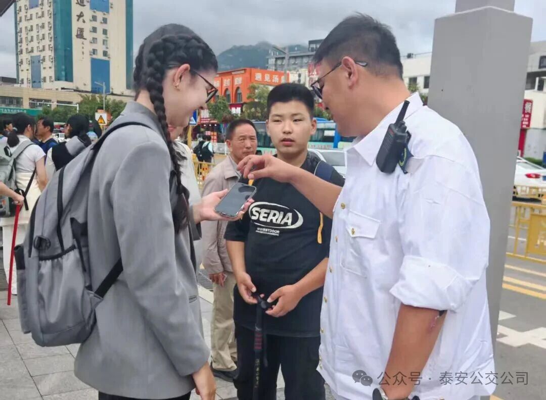 國(guó)慶假期的泰山火車(chē)站,人流熙攘間滿(mǎn)是出行的活力。10月3日上午10時(shí)許,泰安公交第二分公司副經(jīng)理尹燕群正堅(jiān)守在執(zhí)勤崗位上,疏導(dǎo)客流、解答疑問(wèn)、維護(hù)秩序。就在這時(shí),一位在公交站牌旁面露難色的外籍游客,引起了他的注意。